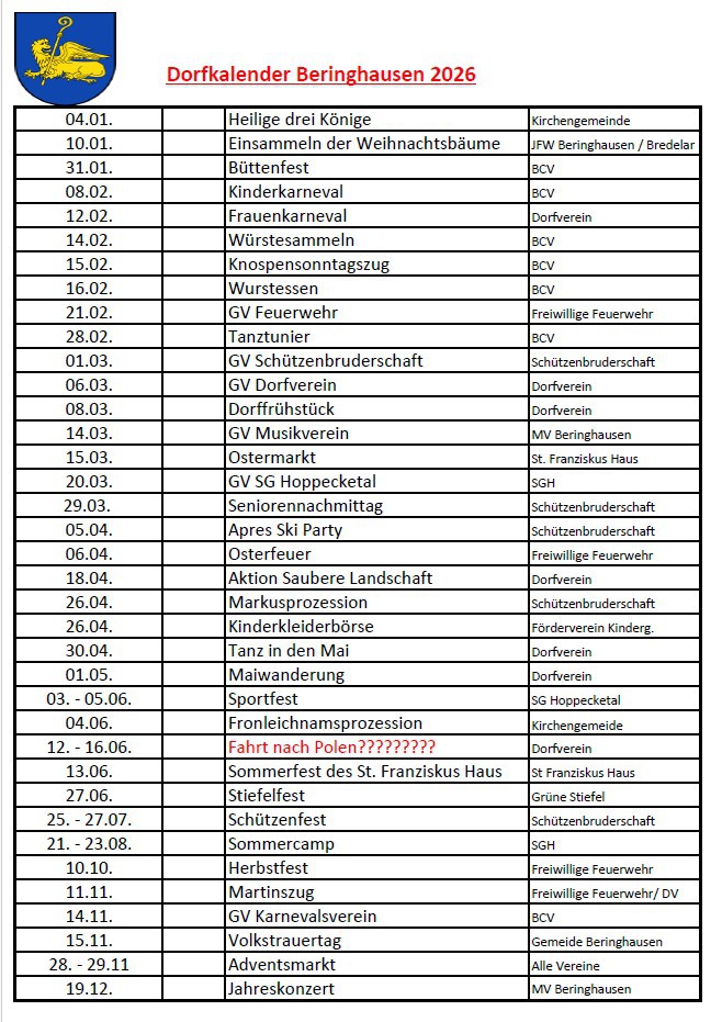 Dorfkalender Beringhausen 2026